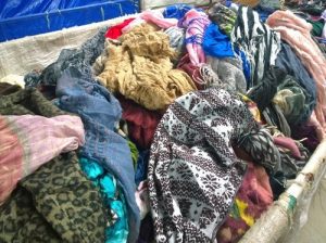 When we use the term ‘mixed rags’ or ‘institutional clothing,’ we are referring to a category of clothing that is considered ‘used’ that either was not sold in a resale or was not suitable for resale. That means that these items were either store returns, apparels and household rummages from thrift store locations or discount apparel stores. The reasons for this are many, but generally include materials that are imperfect — they may have stains, rips, broken zippers or missing buttons. Like many other used clothing materials, ‘mixed rags’ are first donated to a thrift store or charity, and if they are not sold, they are then removed from the storefront and sent to a warehouse. In these cases, at times, these materials may also have the pricing tags still attached from their original thrift store location. There they are sorted, compressed into bales of clothing, stored until they can be sold, and once they have a market for sale they are sold in bulk and by weight to clothing wholesalers. It is often the case that these materials are packaged in amounts of 800-1,200-point bags.